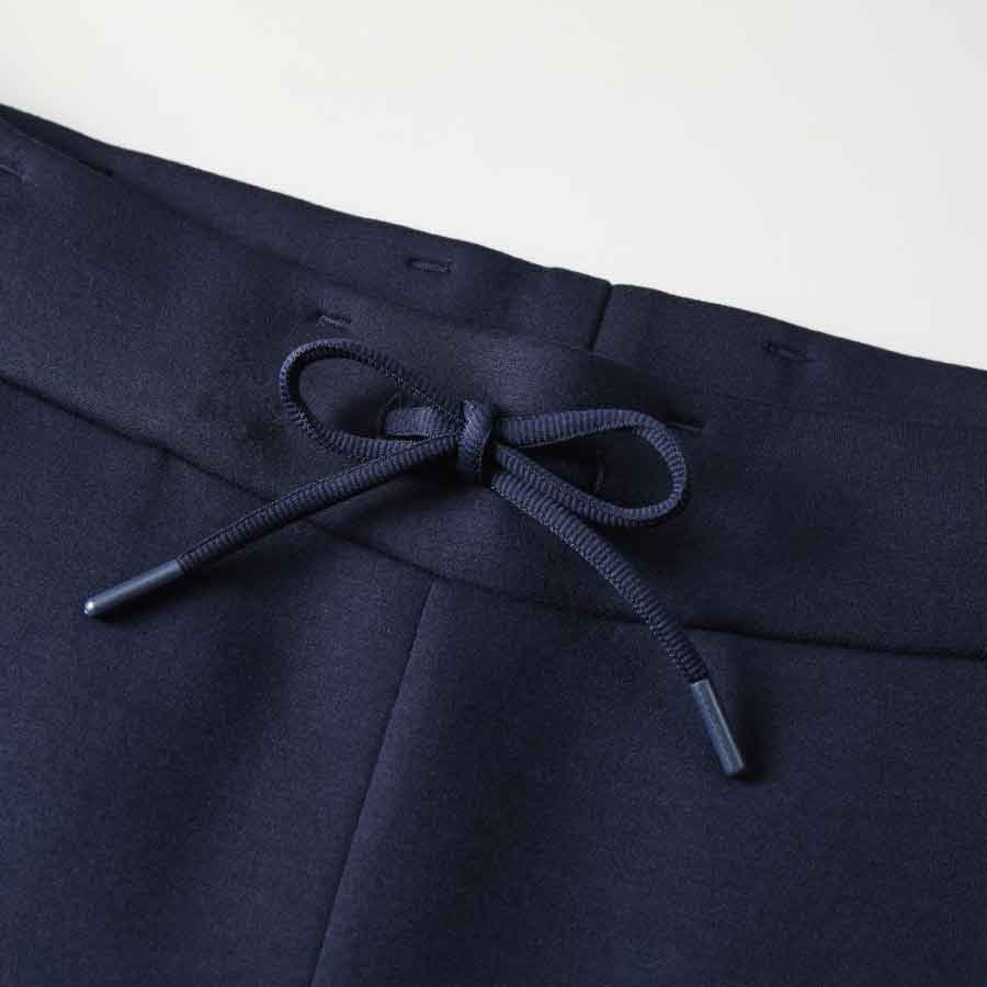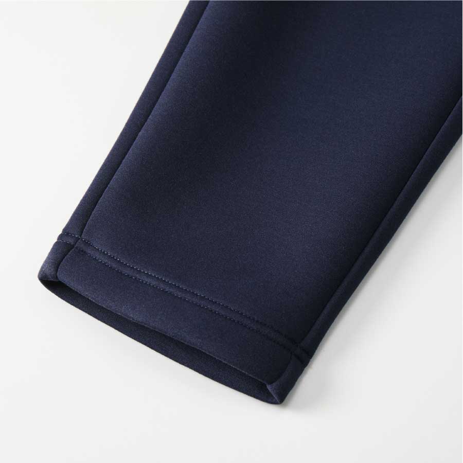 2枚の生地を中糸で繋ぎあわせたダンボールニット生地のパンツ。