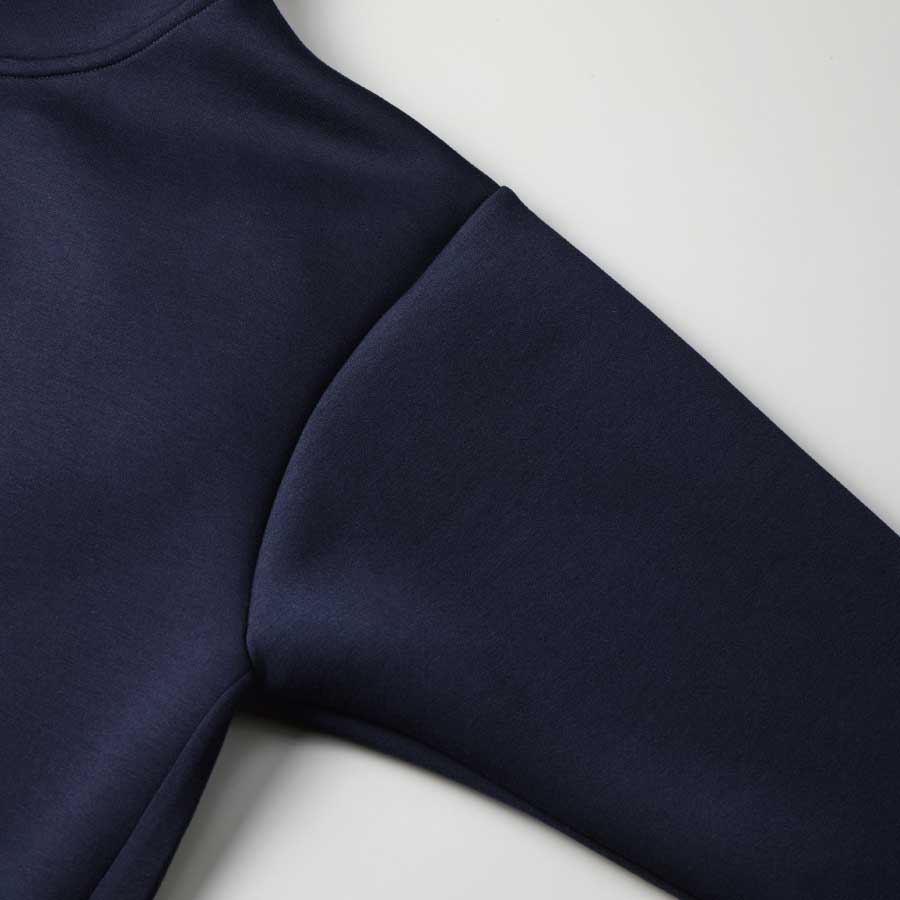 生地厚がしっかりとあるため、大きめフードは立体的で存在感抜群。
