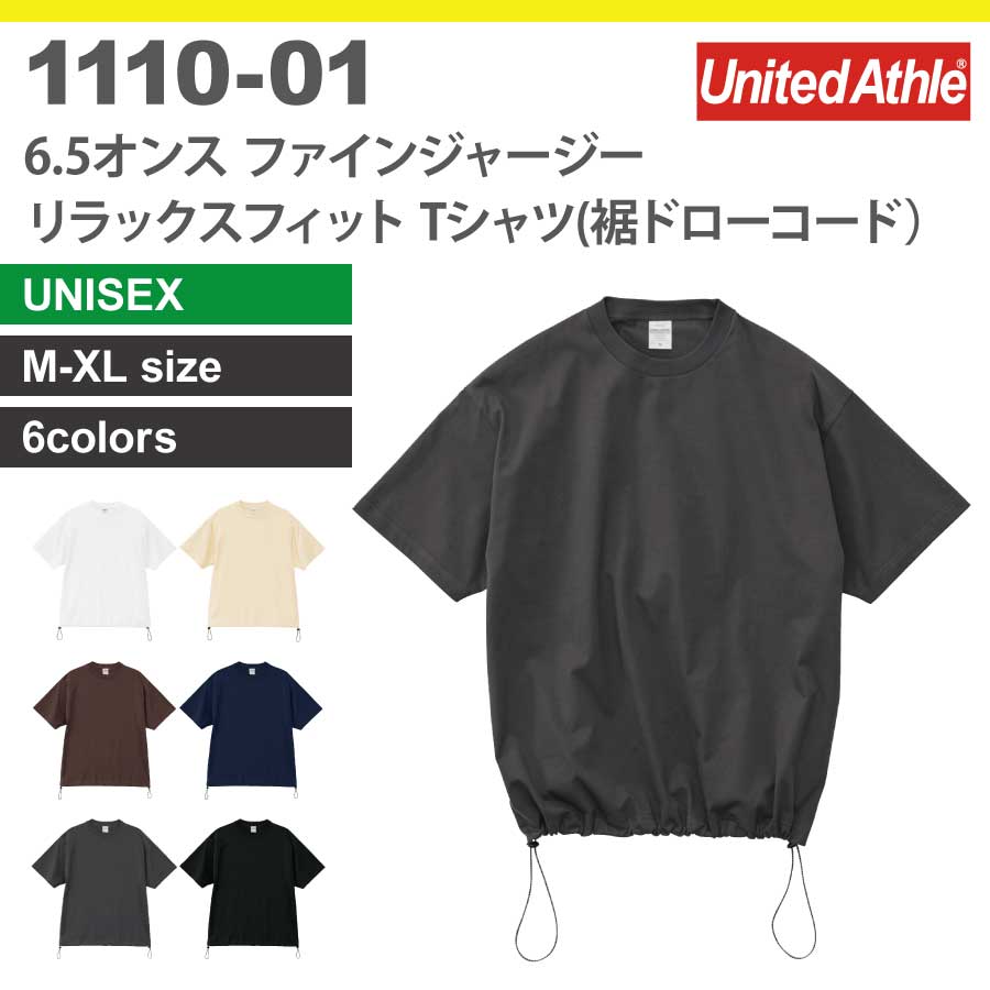 1110-01 6.5オンス ファインジャージー リラックスフィット Tシャツ(裾ドローコード)